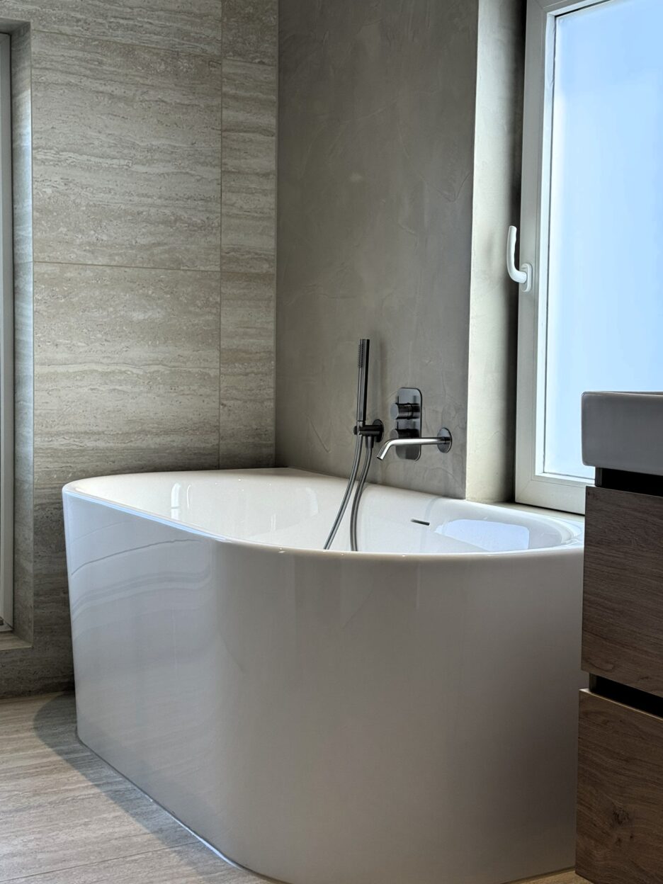 Strakke lijnen, warme accenten en als ultieme relax-factor: dat heerlijke halfvrijstaande bad. 🛁💫